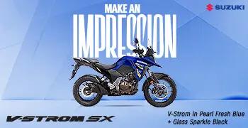 Your search for a Suzuki V-Strom SX showroom has brought you to Navasari Suzuki, Navsari, Navsari, a one-stop-destination where you can buy your new V-Strom SX in Navsari. At Navasari Suzuki, you can enquire about the ex-showroom price of the Suzuki V-Strom SX, get a quote for its on-road price, explore the top features and accessories of the Suzuki V-Strom SX, avail insurance and finance for your bike, or inquire for the best available offers & discounts. You can also book a test ride online at Navasari Suzuki, Navsari, Navsari, to experience what the bike has to offer. Equipped with a 249cm³, 4-stroke, single-cylinder engine, the Suzuki V-Strom SX is a popular sport adventure tourer that offers nimble handling and a lightweight build for manoeuvring through city streets, while its sporty performance ensures thrilling rides across varied terrains.